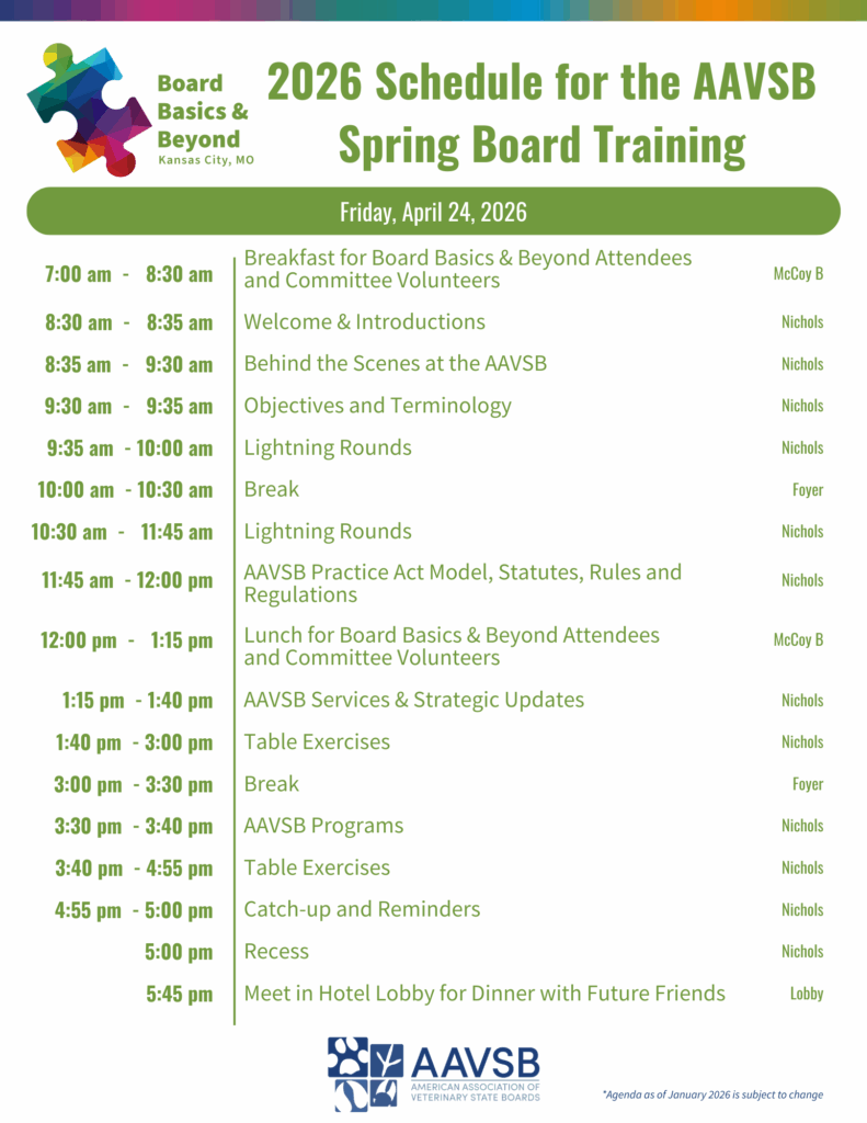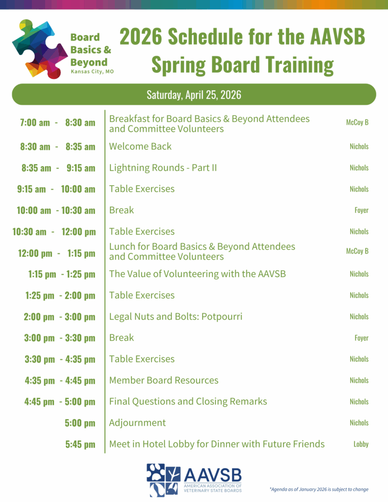 AAVSB’s spring meetings offer targeted development opportunities for member board leaders and staff.